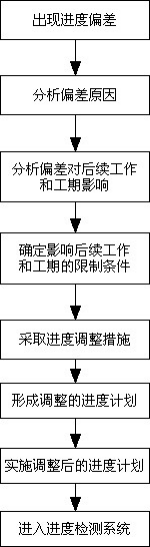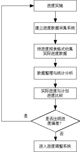 当工程进度出现偏差后,监理工程师应该启动进度计划调整系统。对进度计划实施调整。出现进度偏差总是难免的,重要的在于出现偏差后及时进行进度调整。进度计划调整系统过程图如下:
